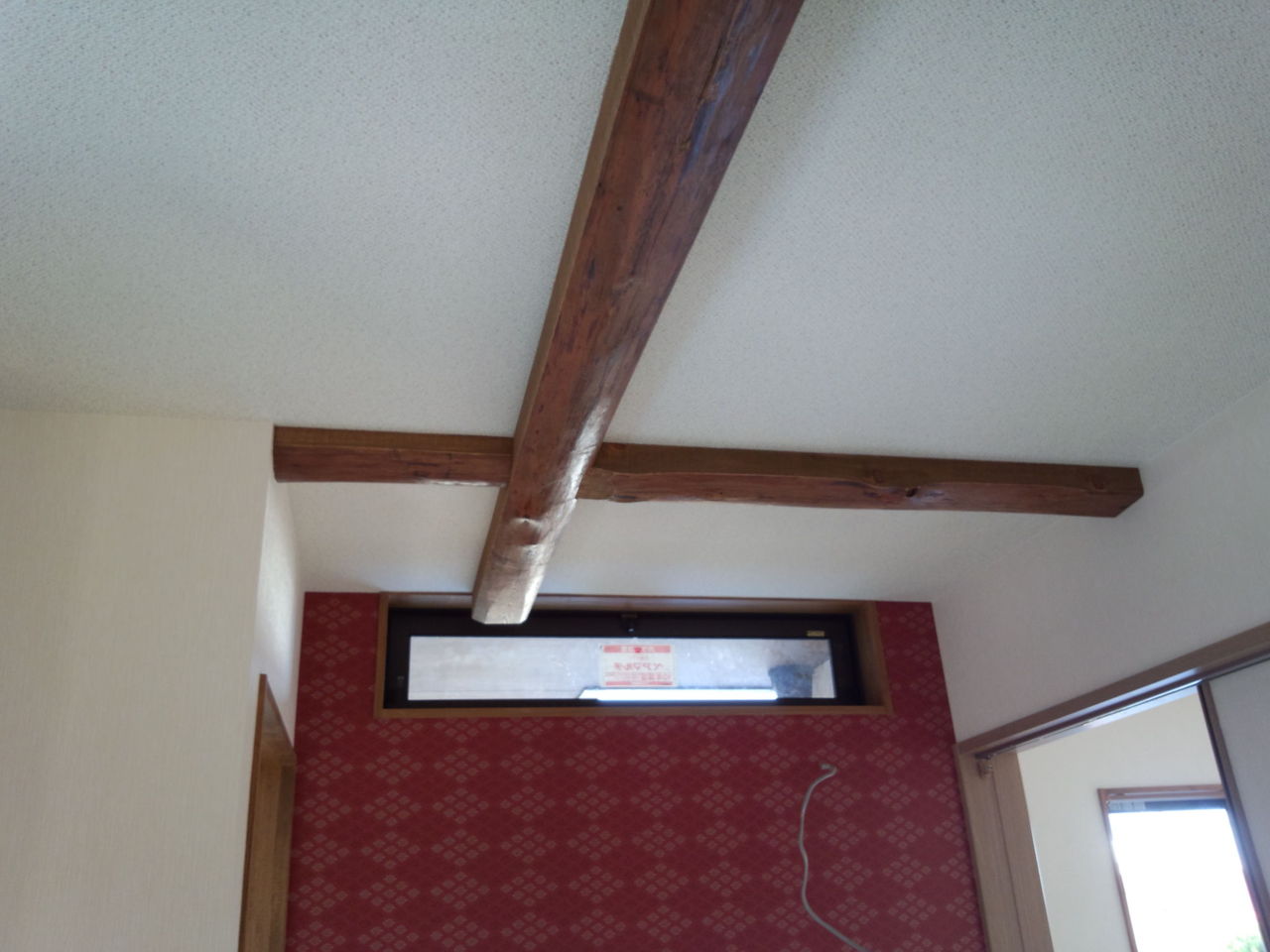 シキメ天井とかジュラク壁というのは↓写真のような昔ながらの木の天井と左官屋さんの塗る塗り壁です。