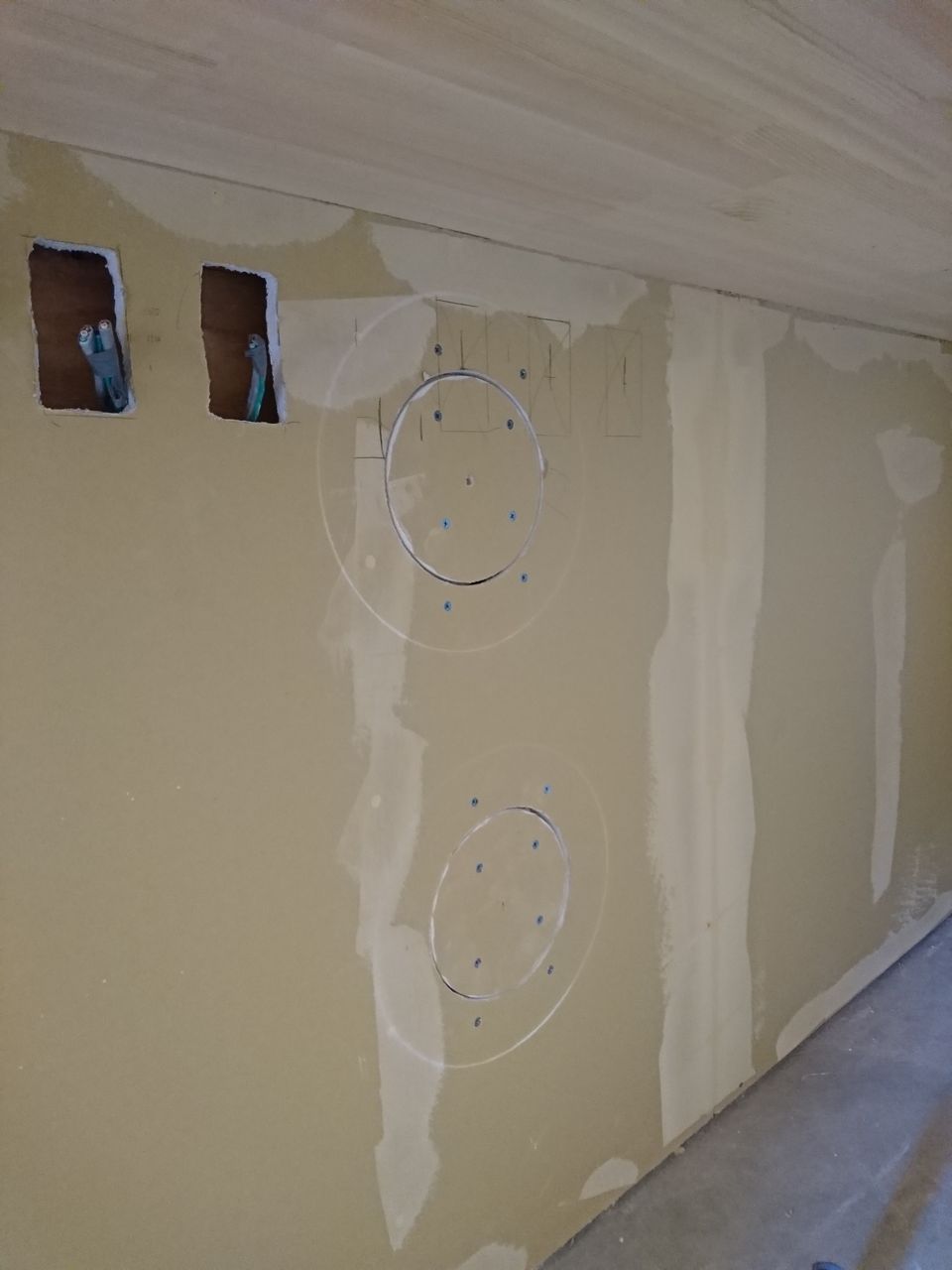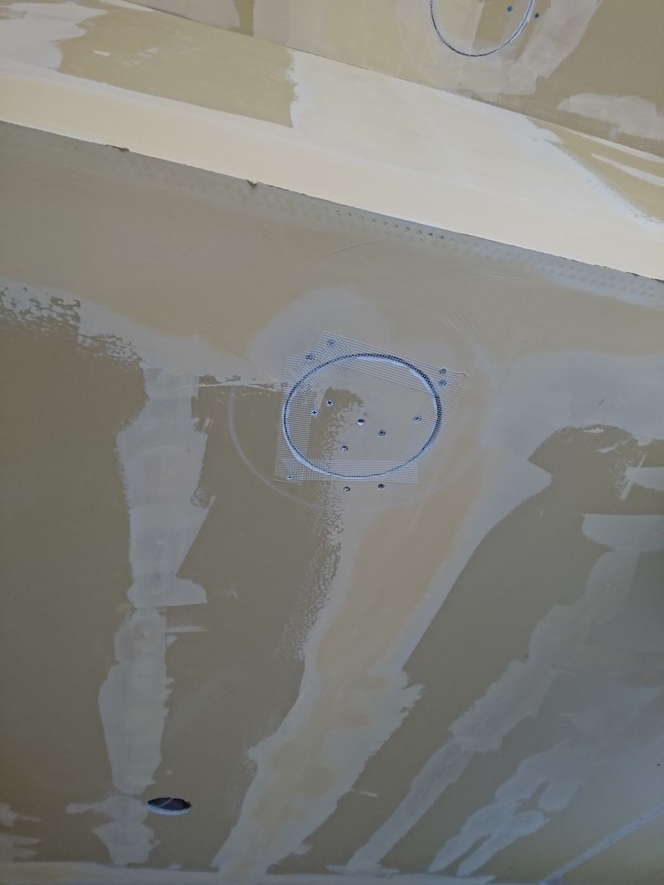 ずいぶん前に電気屋さんがよくやるような円形のボード補修のパテの仕方について質問いただいていたんですが、なかなか記事にできるようなハプニングはありませんでした。笑 いや少しくらいはあったんですが、応援の方にやっていただいたりと自分がやる機会がなかったんですよね。