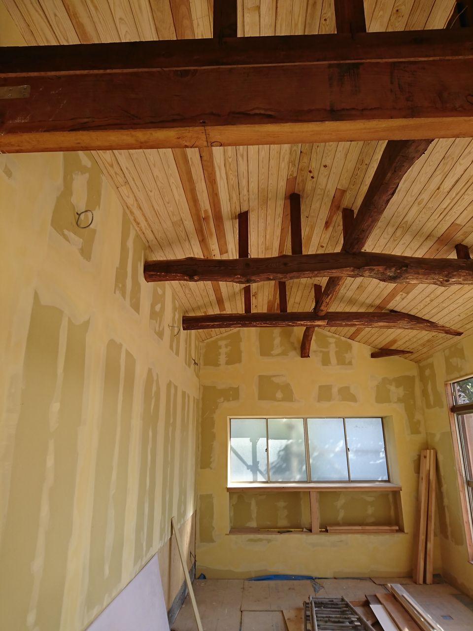 でもね、よくクロス貼る前でよかったって言う人多いけどなんにもよくないからね。パテと削りだってすごい労力なのよ。そこんとこ、わかって欲しいですよね。